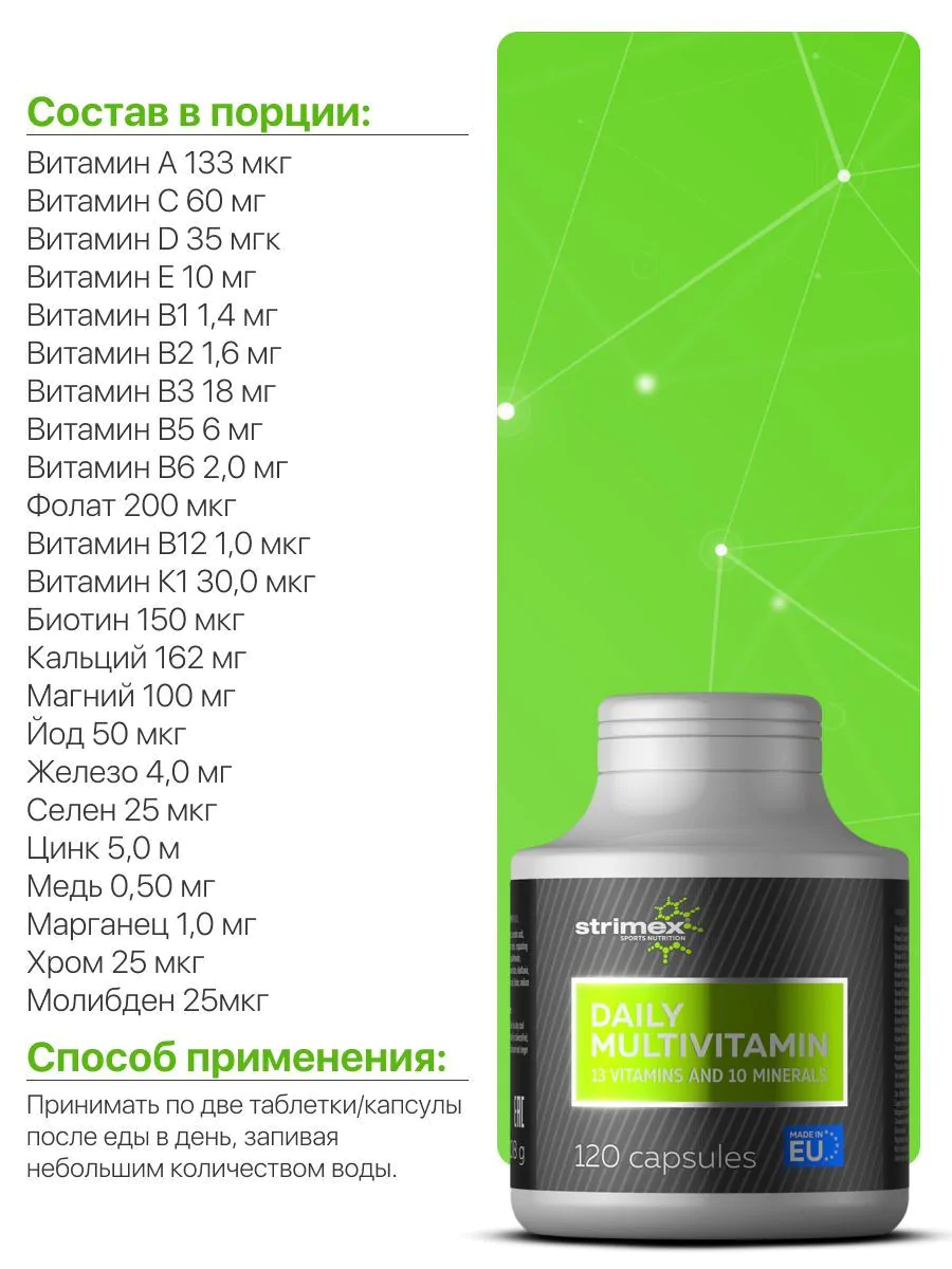 Преимущества Витамины Daily Multivitamin Strimex 120 капс.:
