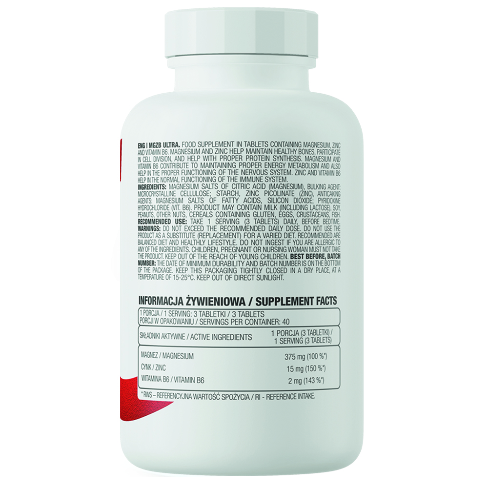 Размер порции Магний Цинк B6 Ультра Ostrovit MgZB Ultra 120 табл. 3 таблетки: