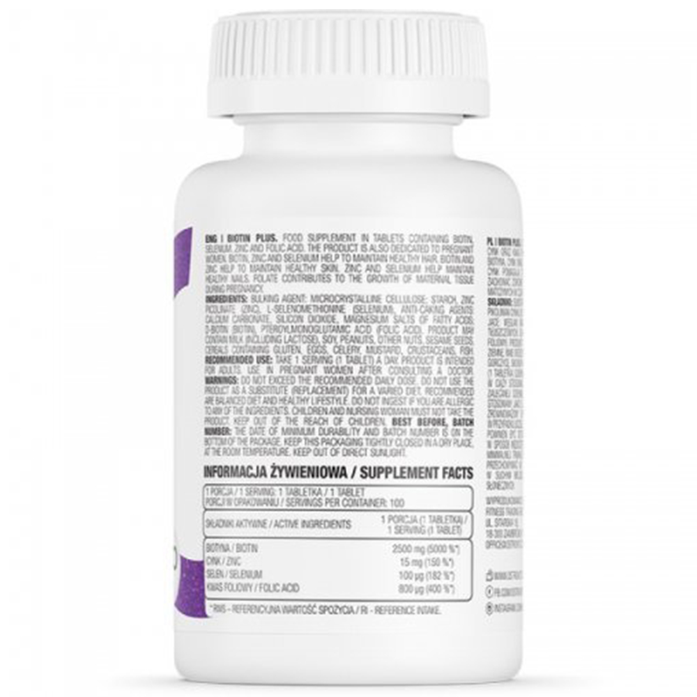 Состав Биотин Плюс B7 Ostrovit Biotin Plus 2500 мкг 100 таб. в одной таблетке: