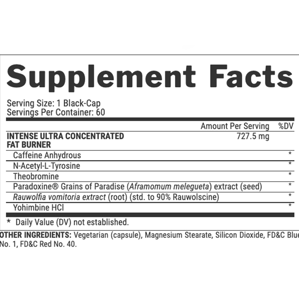 Ингредиенты Количество На порцию 1 капсула Ultra concentrated fat loss support complex 294,5 мг Кофеин безводный Померанец (50% р-синефрин) Треобромин безводный Йохимбин гидрохлорид Rauwolscine -